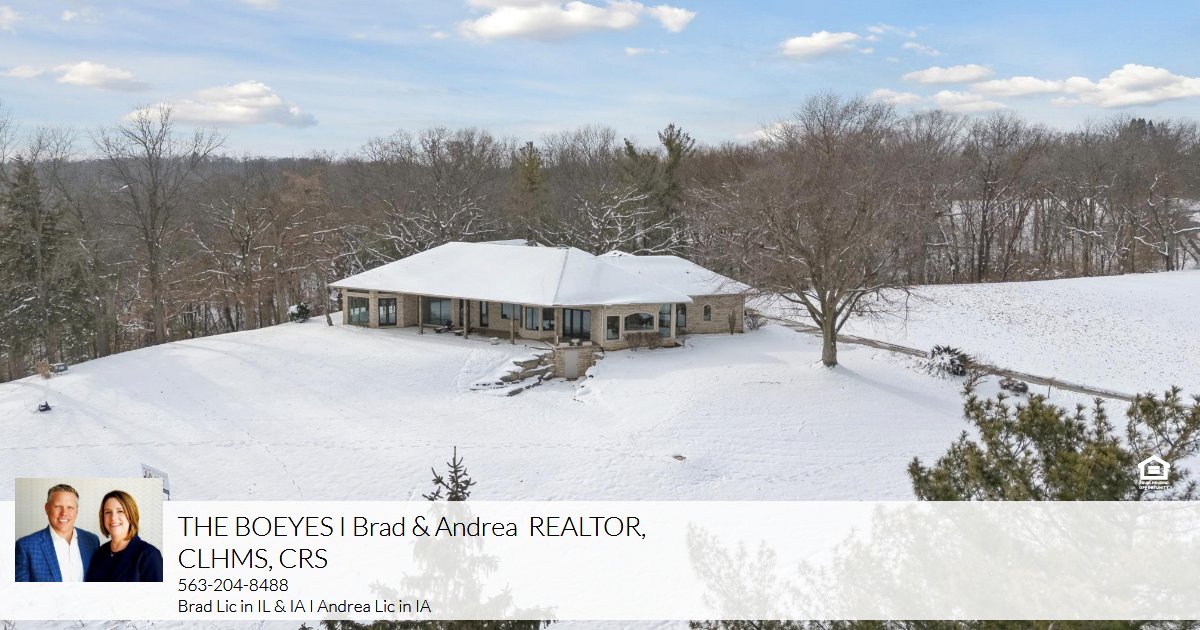 Experience a rare blend of Midwest charm and coastal luxury in this architectural showpiece overlooking the Mississippi River in LeClaire, Iowa. Designed to feel like a Florida retreat, this ranch-style home for sale in the Quad Cities offers panoramic river views from nearly every room. The solid stone exterior and grand drive lead to mahogany double doors that open to sweeping vistas of the river the moment you step inside. The primary suite is a private sanctuary, featuring floor-to-ceiling windows, a serene sitting area, and a spa-inspired bath that feels like a luxury resort. With heated floors throughout, new carpet on the main level, and a heated garage, this property delivers comfort in every season. Nestled on a 3.77-acre private lot (with potential to subdivide), it’s the perfect setting to enjoy sunrises over the water, brilliant autumn colors, and peaceful snowfalls. Located just minutes from historic downtown LeClaire, with its boutique shops, dining, and riverfront charm, this Mississippi River estate offers unmatched privacy, elegance, and timeless design.